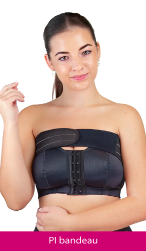 È stato quindi sviluppato dal Prof. Santanelli di Pompeo, esperto di chirurgia mammaria, un reggiseno bicomponente specifico per protesi lisce senza bretelle ma composto da morbide coppe e da una fascia compressiva, capace di contenere delicatamente il seno e mantenere la protesi nella corretta posizione.